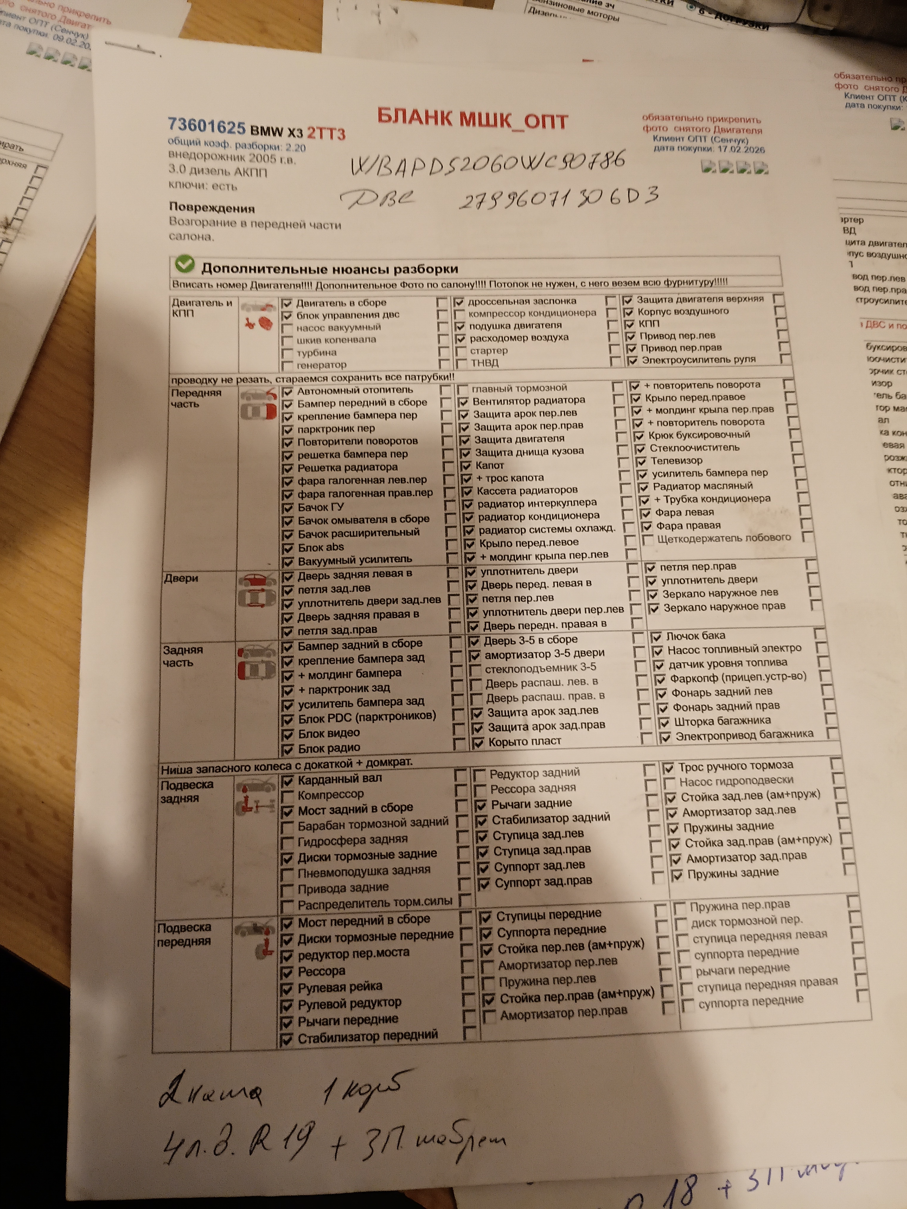 Разборка Комплектность