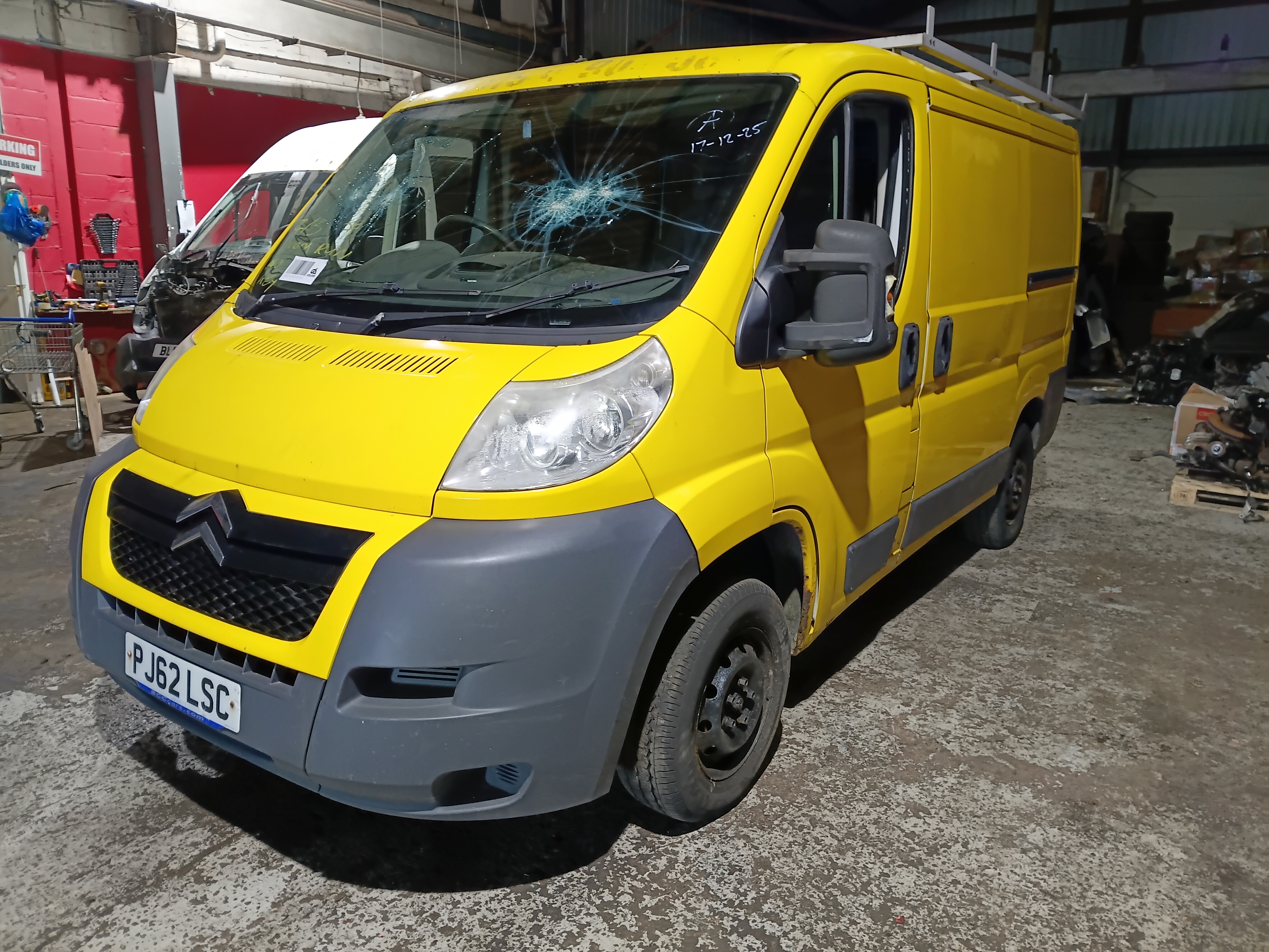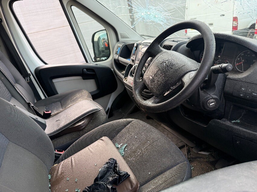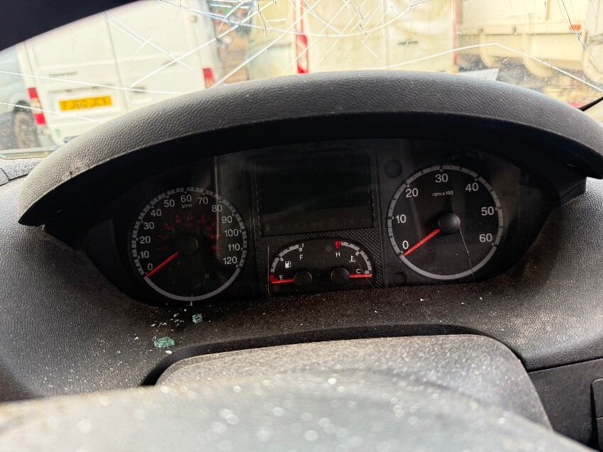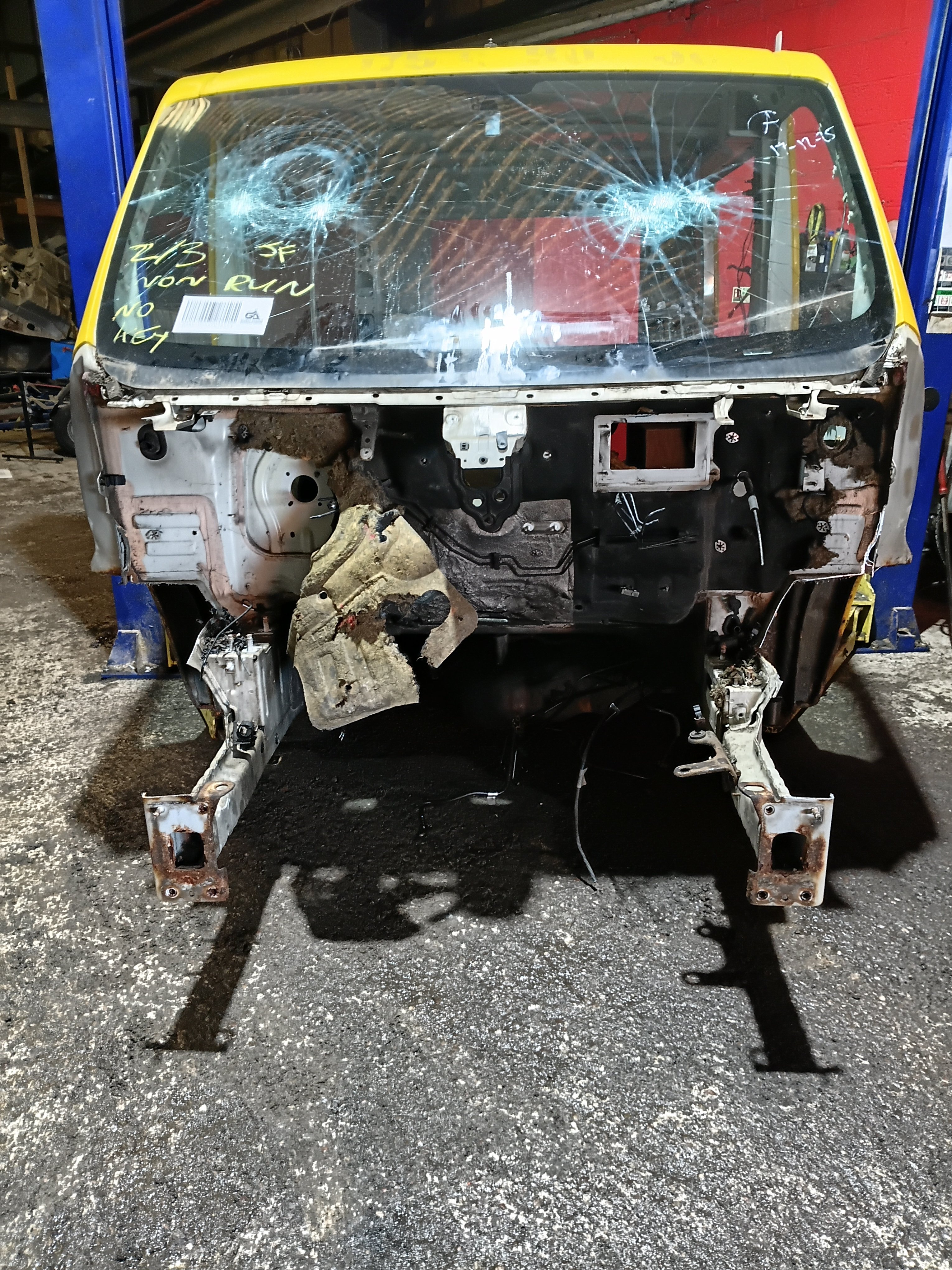 Locked, rear bumper, nsr door, osr door, osr light, os quarter panel, os sill, osf window, os mirror, windscreen, front bumper, ns mirror, nsf window, ns sliding door, general wear and tear.