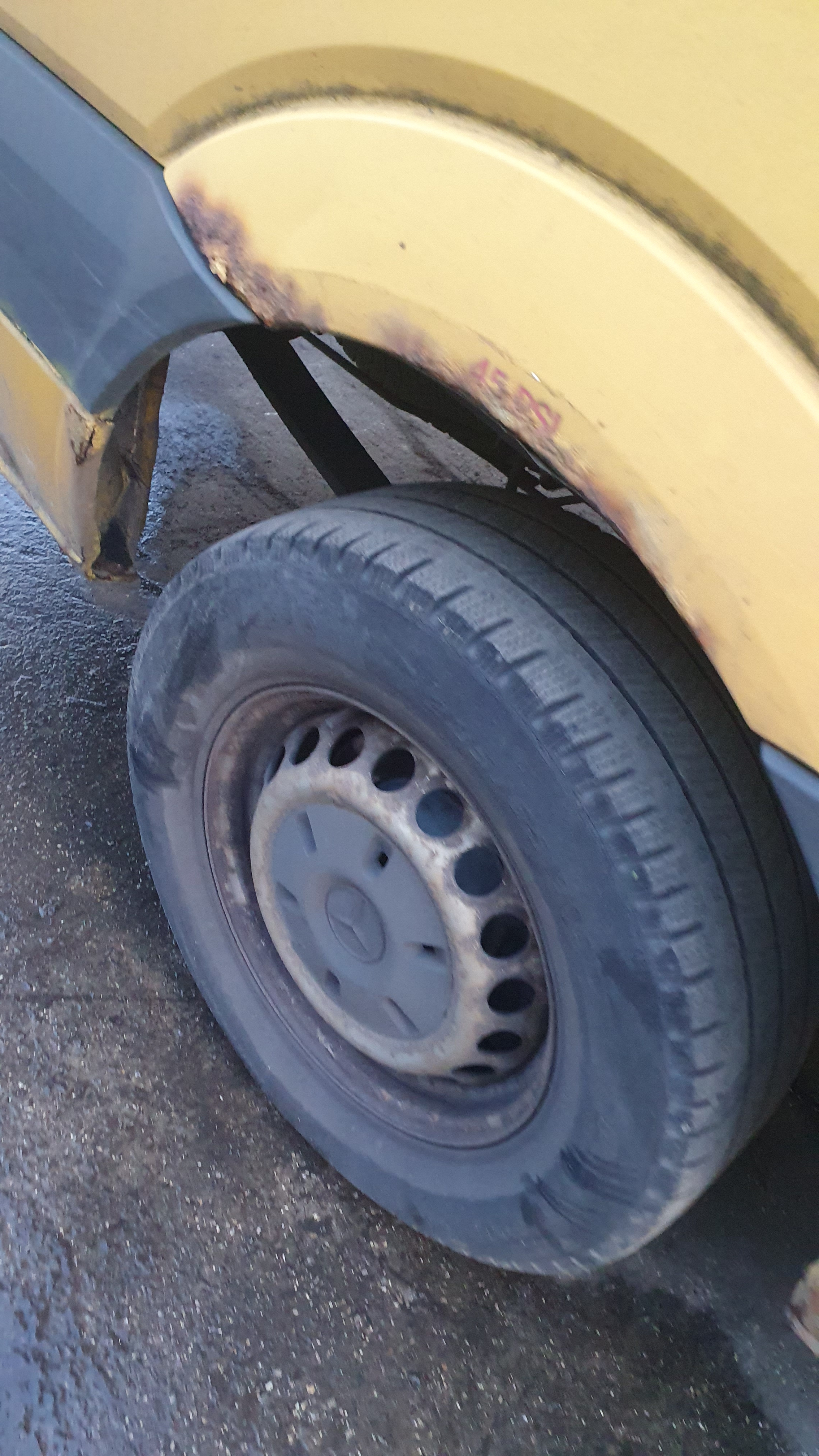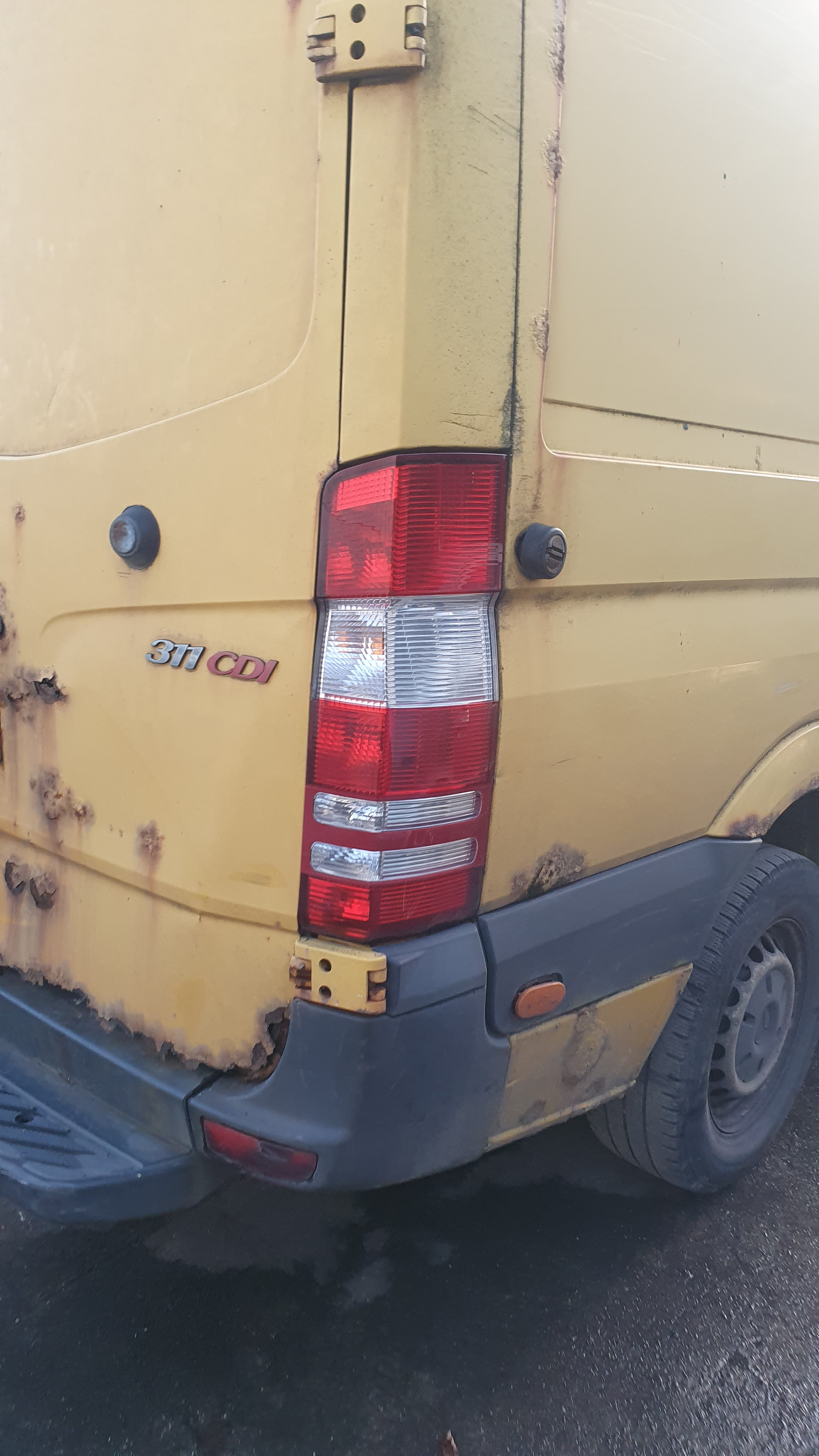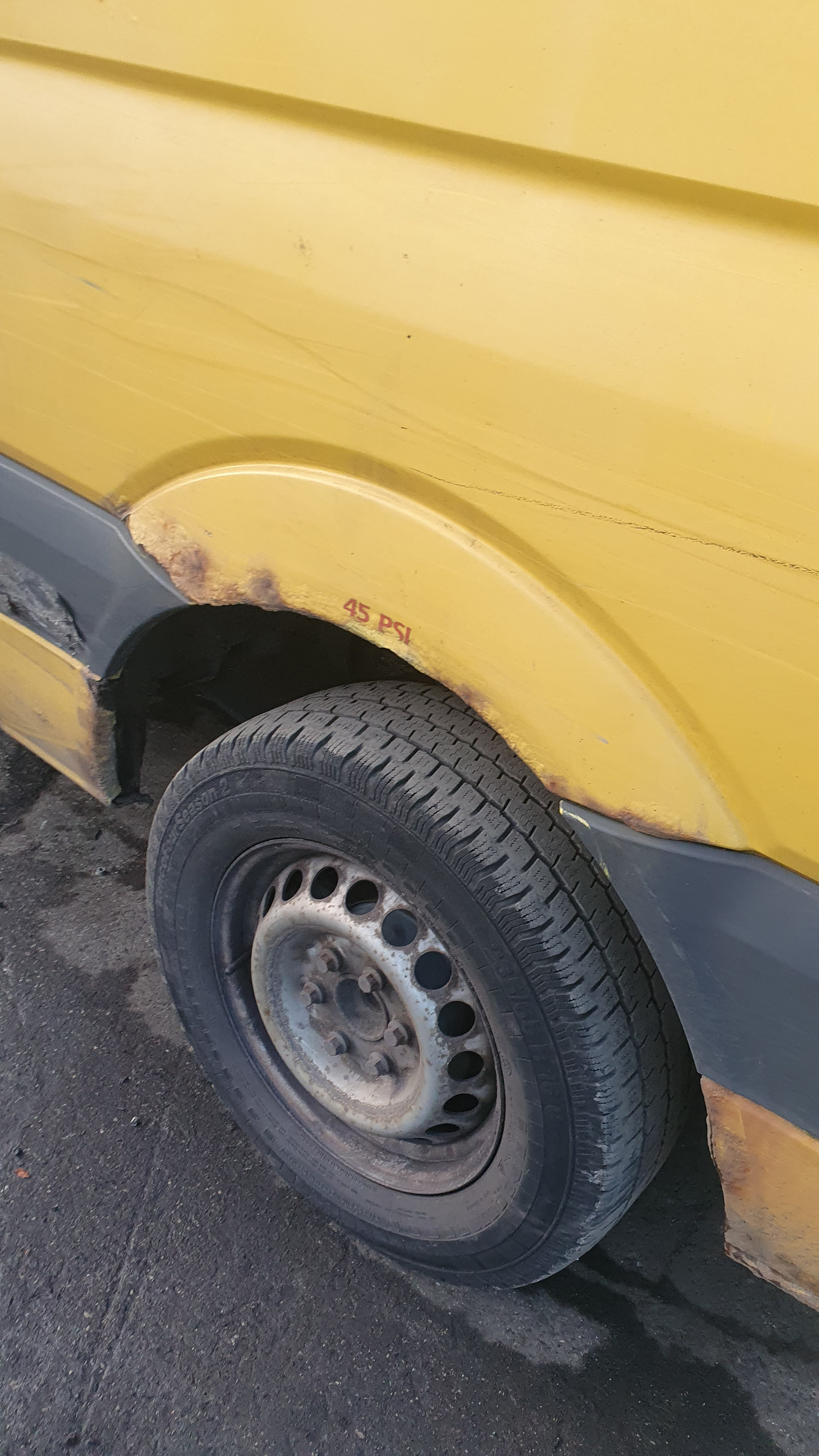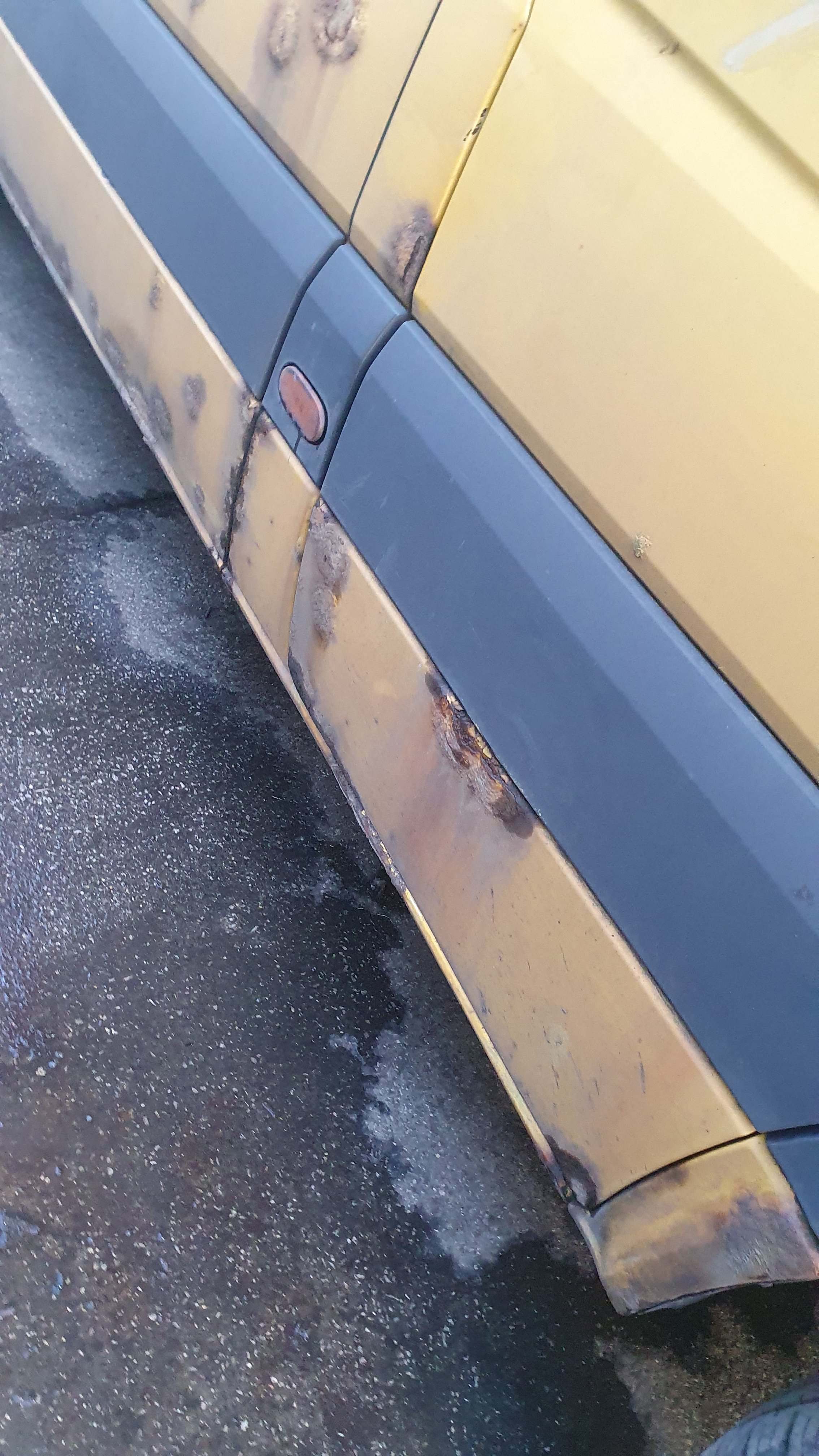 O/s/rear door, rust on every panel, o/s/front mirror, o/s wing, front bumper missing, front crash bar, n/s wing, n/s/front door, n/s/rear sliding door, n/s quarter panel, general wear and tear.