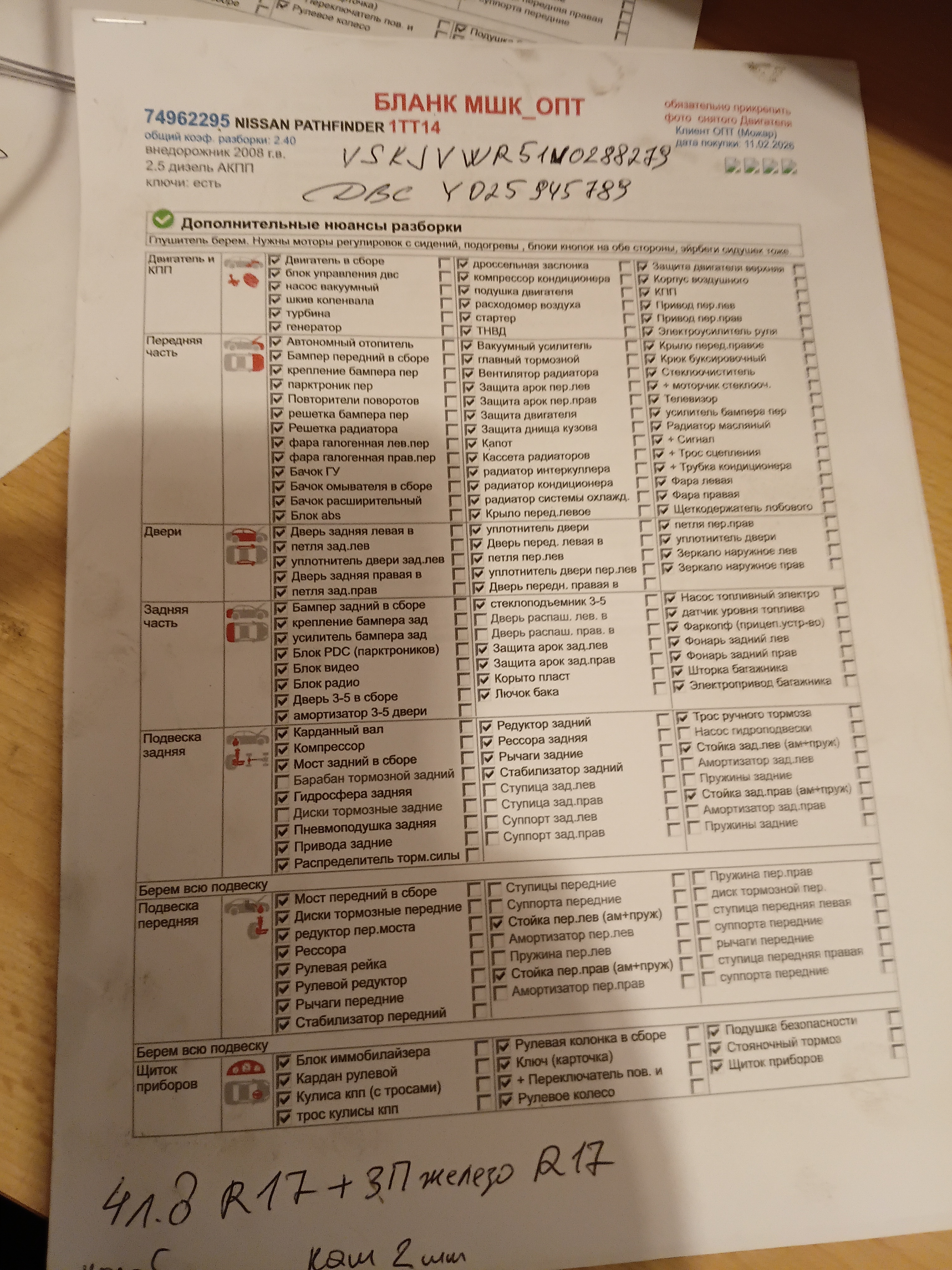 Разборка Комплектность